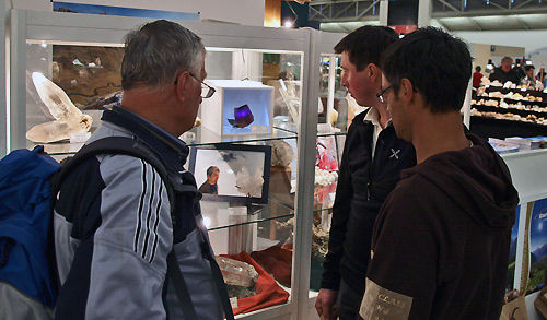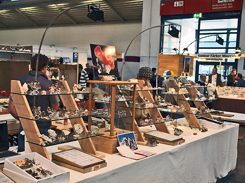 Die Mineralientage in München waren in diesem Jahr rein von meinem Gefühl her sehr gut besucht, zudem waren einige neue Aussteller vertreten. Was mich natürlich am meisten gefreut hat, war das Thema der diesjährigen alpinen Sonderschau "Tessin". Das Tessin ist mineralogisch ein extrem vielseitiger Kanton und so faszinierten zahlreiche Zepterquarze, Eisenrosen und Einschlussquarze die Besucher. Zudem war eine Kluft aus der Nadelquarzfundstelle im Val Bedretto nachgebaut, die vorallem das junge Publikum faszinierte. Ebenfalls sehr interessant waren eine Reihe von Vitrinen in denen Mineralien aus dem tessiner Bauabschnitt des Gotthard Strassentunnels gezeigt wurden.